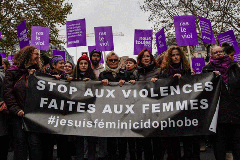 Dòng người xuống đường tuần hành phản đối bạo hành phụ nữ ở Paris (Pháp)