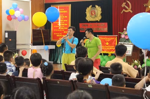 Tại buổi tuyên dương, các em học sinh đã rất vui vẻ, hào hứng với những tiết mục nghệ thuật của các nghệ sỹ Xuân Bắc, Tự Long…