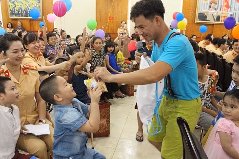 Nghệ sỹ Xuân Bắc trao quà cho các em nhỏ