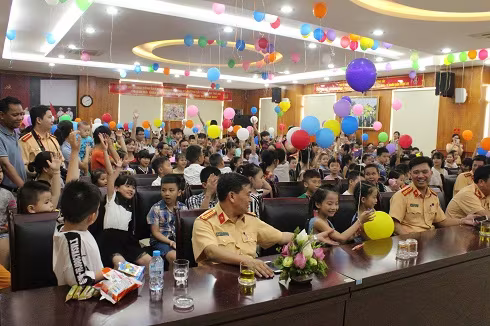 Không khí vui tươi phấn khởi trong ngày tuyên dương học sinh giỏi và ngày Tết thiếu nhi tại Phòng Cảnh sát giao thông đường bộ, đường sắt