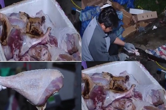 Số đùi gà tây đựng trong các thùng xốp đá nhưng vẫn có dấu hiệu bị hỏng