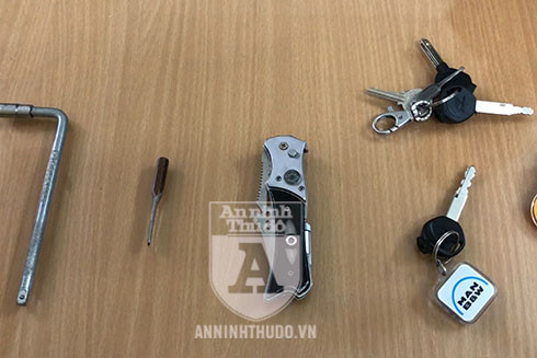 Sau khi lấy trộm 4 chiếc xe vẫn cắm chìa tại ổ, các đối tượng quay lại dùng vam phá khóa và lấy đi 2 chiếc xe máy khác