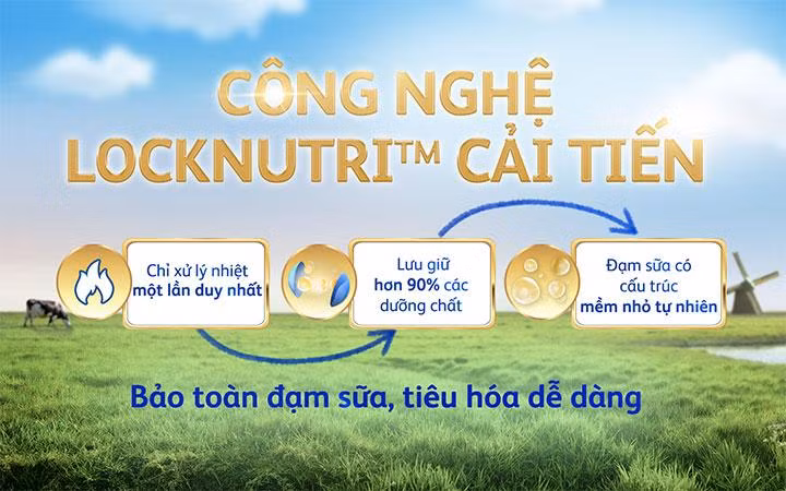 Quy trình LockNutri tiên tiến bảo toàn cấu trúc đạm gần với tự nhiên nhất, giúp bé hấp thu nhanh và dễ dàng tiêu hóa.