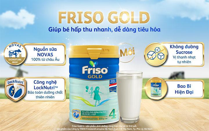 Friso Gold mới với 100% nguồn sữa được nhập khẩu từ Hà Lan, tập trung cải tiến ở 3 khía cạnh quan trọng: nguồn sữa Novas chất lượng, quy trình LockNutri và hương vị thanh nhạt, tự nhiên.