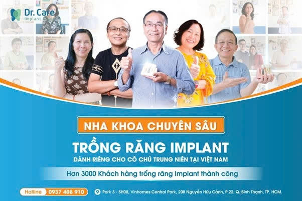 Tại Dr. Care - Implant Clinic, Bác sĩ trực tiếp điều trị cấy ghép Implant có hơn 7 năm kinh nghiệm thực tiễn điều trị cấy ghép thành công cho hơn 3.500 ca Implant từ mất một răng đế mất răng toàn hàm và các trường hợp bệnh nhân có bệnh lý nền (tiểu đường, cao huyết áp, mất răng lâu năm tiêu xương hàm trầm trọng,...)