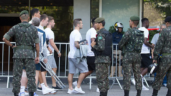Trong các buổi tập của thầy trò HLV Roy Hodgson, nhất cử nhất động của những ngôi sao trong đội hình Tam sư đều được bảo vệ bởi hơn 100 cảnh sát, quân đội cùng với súng và xe bọc thép. Có lẽ, chưa ở kỳ World Cup nào người ta lại thấy cảnh tượng này.