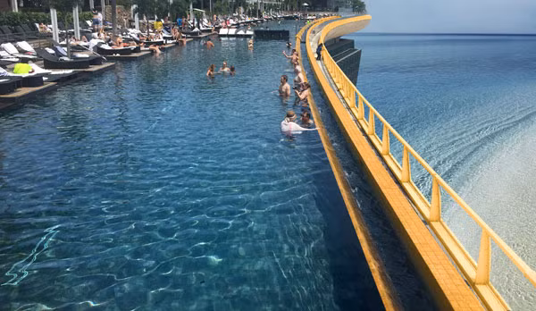 Bể bơi vô cực cao nhất và lớn nhất thế giới đặt trên nóc toà nhà và được thiết kế để nước chảy tràn qua thành bể, làm cho mặt bể lúc nào cũng phẳng như gương và tạo cảm giác bể kéo dài đến… vô cực giống như toà nhà Marina Bay Sands ở Singapore.