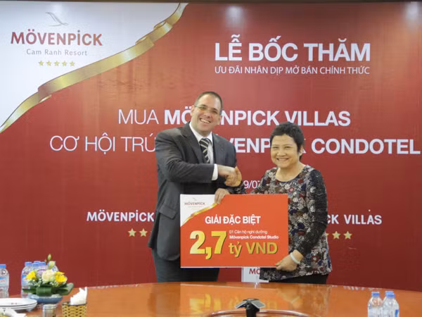 Với những đặc điểm ưu việt nổi trội so với các dự án nghỉ dưỡng khác trên thị trường, Movenpick Cam Ranh Resort đã trở thành nam châm thu hút đầu tư. Chỉ trong một thời gian ngắn, các nhân viên kinh doanh dự án đã tư vấn bán được rất nhiều sản phẩm nghỉ dưỡng gồm cả biệt thự và căn hộ condotel. Ngay tại lễ bốc thăm trúng thưởng, ban tổ chức đã trao thưởng cho nhân viên kinh doanh xuất sắc nhất là chị Bùi Thị Lý - người đã tư vấn bán được 2 căn biệt thự Mövenpick Villas và 5 căn hộ nghỉ dưỡng Mövenpick Condotel.