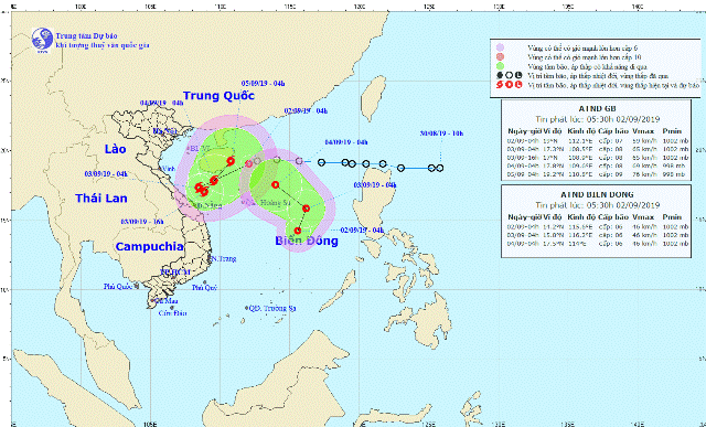 Đến rạng sáng mai, 3/9, vị trí tâm bão ở khoảng 17,3 độ Vĩ Bắc; 108,5 độ Kinh Đông, cách đất liền các tỉnh từ Quảng Trị - Quảng Ngãi khoảng 150km về phía Đông. Sức gió mạnh nhất vùng gần tâm bão mạnh cấp 8 (60-75km/giờ), giật cấp 10.