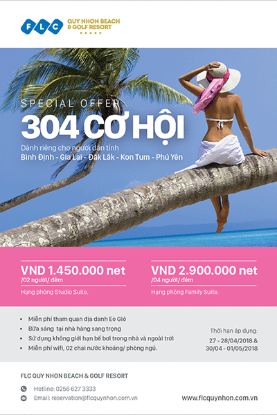 Dịp nghỉ lễ dài này, FLC Quy Nhơn chào đón những vị khách miền Trung thân thương như Bình Định, Gia Lai, Đắk Lắk, Kom Tum, Phú Yên bằng ưu đãi vô cùng đặc biệt để tận hưởng kỳ nghỉ đẳng cấp 5 sao chỉ với mức giá siêu “mềm” cho 2 dạng phòng Studio Suite và Family Suite kèm nhiều ưu đãi hấp dẫn khác nữa.