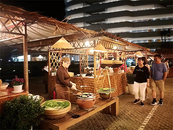 Được thiết kế chủ đạo với nhà tranh và nón lá, khu Ẩm thực đường phố đã mang không khí dân dã đến giữa không gian resort sang trọng.