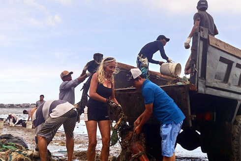 Người nước ngoài tham gia dọn rác tại Mũi Né
