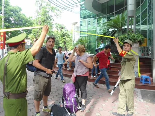 Tại chốt bảo vệ ở ngã tư Ngô Quyền - Hai Bà Trưng, chúng tôi chứng kiến đồng chí Phạm Trung Khánh Tùng – Đội trưởng đội CSGT-T-PƯN CAQ Hai Bà Trưng đang cùng CAP Vĩnh Tuy và bảo vệ dân phố, dân phòng tận tình hướng dẫn 2 vị khách nước ngoài vào khu vực xem khối diễu binh, diễu hành đi ngang qua đường Tràng Thi, quận Hoàn Kiếm. Bắt tay đồng chí Đội trưởng, anh Sergi Moreno và chị Neus Agusti, hai vị khách đến từ Tây Ban Nha bày tỏ: “Chúng tôi đã đi du lịch ở nhiều quốc gia, nhưng không ở đâu có ấn tượng tốt đẹp như Việt Nam. Nhiều người dân Hà Nội đã chỉ đường cho chúng tôi đến khu vực hồ Hoàn Kiếm; và khi đến nơi, chúng tôi được các chiến sỹ Công an nhiệt tình hướng dẫn”.