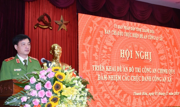 Tại Hội nghị, Thiếu tướng Nguyễn Hải Trung, Giám đốc Công an tỉnh Thanh Hóa đã triển khai quán triệt nội dung cơ bản của Đề án; trao Quyết định điều động 253 cán bộ, chiến sỹ đợt 1 năm 2019 đến đảm nhận chức danh Công an xã, trong đó, có 122 đồng chí đảm nhận chức danh Trưởng, Phó Công an xã và 131 đồng chí Công an viên.