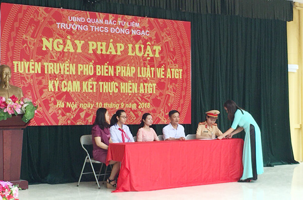 Đại diện nhà trường, phụ huynh, các đơn vị chức năng, học sinh ký cam kết không vi phạm Luật GTĐB và các vi phạm khác trong học đường