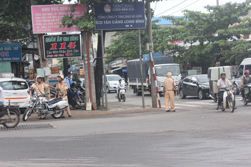 Lực lượng CSGT TP Biên Hòa thực hiện nhiệm vụ tại ngã 4 ICD Tân Cảng, đường Bùi Văn Hòa - điểm “nóng” về ùn tắc giao thông