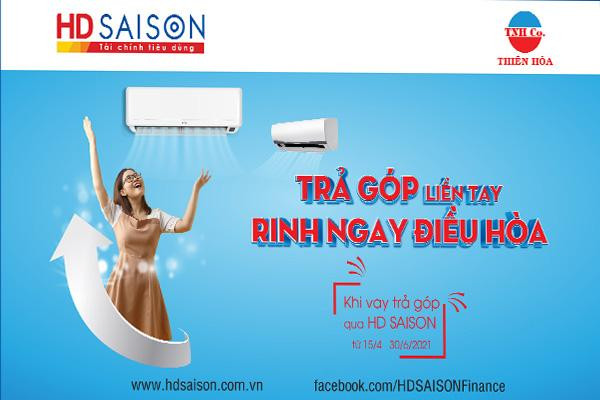 Riêng đối với khách hàng vay trả góp các sản phẩm tại hệ thống cửa hàng điện máy Thiên Hòa trên toàn quốc, sẽ còn được tham gia chương trình khuyến mại “Trả góp liền tay – Rinh ngay điều hòa” với cơ cấu giải thưởng là 07 giải thưởng mỗi giải là một máy điều hòa không khí thương hiệu Reetech. Theo đó, với mỗi hợp đồng vay với HD SAISON trong khoảng thời gian từ 15/04 đến 30/06/2021, khách hàng sẽ nhận được một mã dự thưởng để tham gia chương trình quay số cuối kỳ.