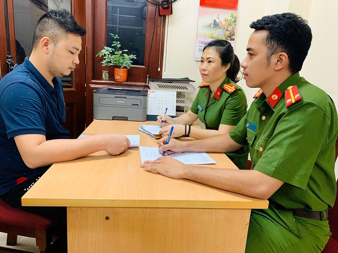 Cơ quan CSĐT - Công an quận Đống Đa lấy lời khai của Nguyễn Chí Nhân