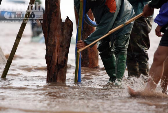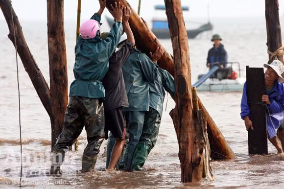 việc chôn cọc xuống cát. Công đoạn này rất mất nhiều sức lực và thời gian