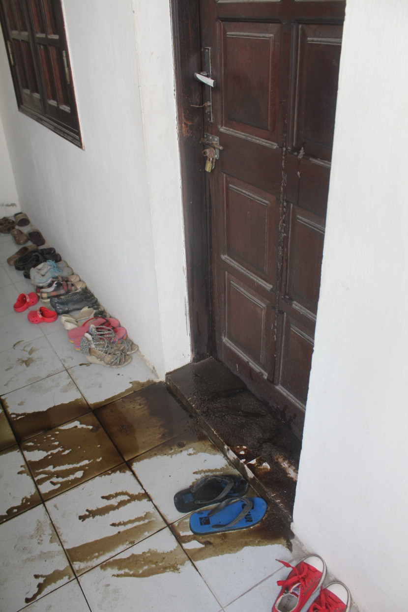 Trước cửa nhà đầy dầu và nồng nặc mùi mắm tôm; Ổ khóa bị đổ keo con voi với