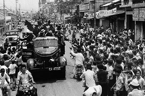 Người dân Sài Gòn chào đón bộ đội giải phóng sau khi Chiến dịch Hồ Chí Minh giành thắng lợi hoàn toàn vào ngày 30-4-1975