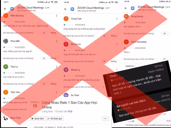 Zoom, Google Classroom, Shub Classroom và một số ứng dụng phục vụ kết nối video trực tuyến để họp, hội thảo hay học tập trên các chợ ứng dụng nhận được hàng trăm đánh giá 1 sao với các bình luận chủ yếu: "App rất tốt nhưng em rất tiếc. Bọn em được nghỉ mặc dù vẫn phải học bù nhưng thầy cô vẫn bắt học online"; "Ứng dụng rất tệ vì nó chạy mượt quá khiến cô giáo cứ bắt mình đi học hoài. Hy vọng sẽ gỡ xuống sớm"; "Em đã quá chán với cái cảnh học online này rồi, kể từ khi app sinh ra, chúng em bị đánh mất sự tự do"…