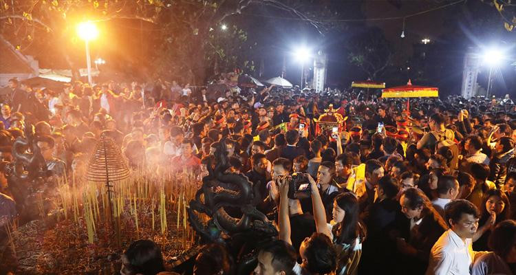 Lễ hội diễn ra vào ngày 15 tháng Giêng thường niên và được mở đầu bằng Lễ khai ấn từ giờ Tý. Đây là một tập tục có từ thế kỷ XIII, chính xác là vào năm 1239 của triều đại nhà Trần. Trên lá ấn thường có dòng chữ: “Trần triều điển cố – tích phúc vô cương”.