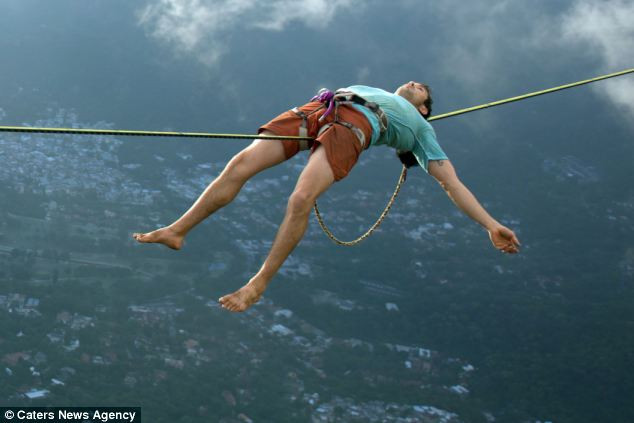 Tờ Daily Mail của Anh ngày 24/03 đã đăng tải một chùm ảnh gây chấn động về một nam thanh niên thản nhiên nằm nghỉ trên một sợi dây thép chăng ngang bờ vực cao khoảng 3000 feet (tương đương 914m) với phong thái cực kỳ ung dung tựa như đang nằm ngủ trên 1 cái ghế dài.