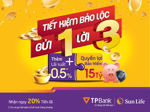 Sản phẩm mới với tên gọi Tiết kiệm Bảo Lộc của TPBank đáp ứng được cả hai nhu cầu của khách hàng: Tiết kiệm và Bảo hiểm. Theo đó, khi khách hàng tham gia gửi tiết kiệm tại TPBank với số tiền tối thiểu chỉ từ 60 triệu đồng, khách hàng sẽ được hưởng lãi suất cao hơn 0,5% so với các chương trình gửi tiết kiệm khác tại quầy.