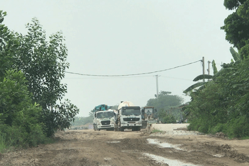Có mặt tại khu vực trên sáng 23-8, chúng tôi chứng kiến cả đoạn đường hướng vào hồ câu Giang Biên bị băm nát, lầy lội, hai mép đường bị lún sâu, xuất hiện nhiều vết nứt rộng. Trên mặt đường, nguyên vật liệu xây dựng bị rơi vãi đọng lại thành từng đống. Tại đây, trung bình vài ba phút lại có một chuyến xe trộn bê tông hoặc xe tải chở vật liệu xây dựng đi qua kéo theo lớp bụi dày đặc. Đường xuống cấp, xe quá tải cày suốt ngày đêm khiến đời sống sinh hoạt của người dân tại khu vực bị đảo lộn.