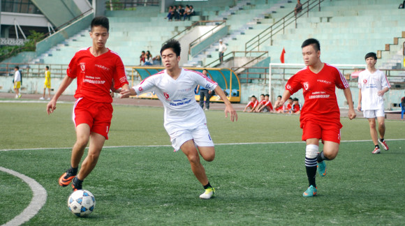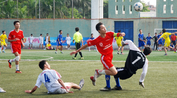 Một chiến thắng đậm khác trong lượt trận hôm qua là trận thắng 7-1 của THPT Hoàng Cầu (áo đỏ) trước THPT Marie Curie