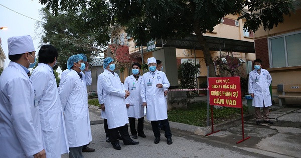 PGS.TS Lương Ngọc Khuê cùng đoàn Bộ Y tế kiểm tra khu cách ly người nghi nhiễm corona ở Vĩnh Phúc