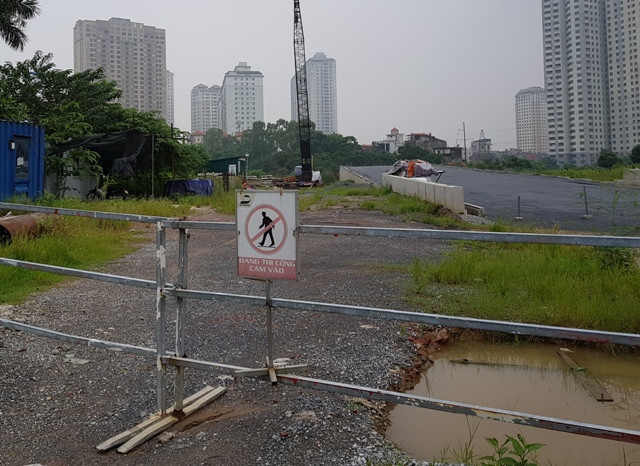 Ghi nhận của phóng viên cho thấy, điểm cuối của dự án (nút giao với đường 70 để sang Xa La) đang quây tôn kín mít. Cầu vượt đang thi công giữa chừng cũng bị dừng lại, cỏ dại mọc um tùm.