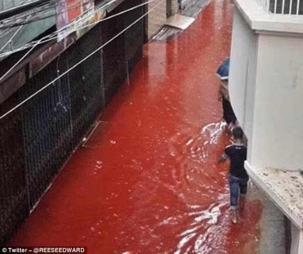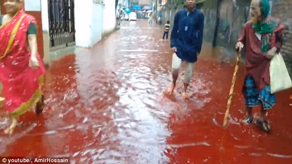 Máu gia súc cùng nước lũ biến đường phố Dhaka thành dòng sông máu