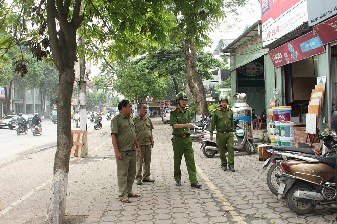 Lực lượng công an thường xuyên nhắc nhở người dân không lấn chiếm vỉa hè, lòng đường để kinh doanh