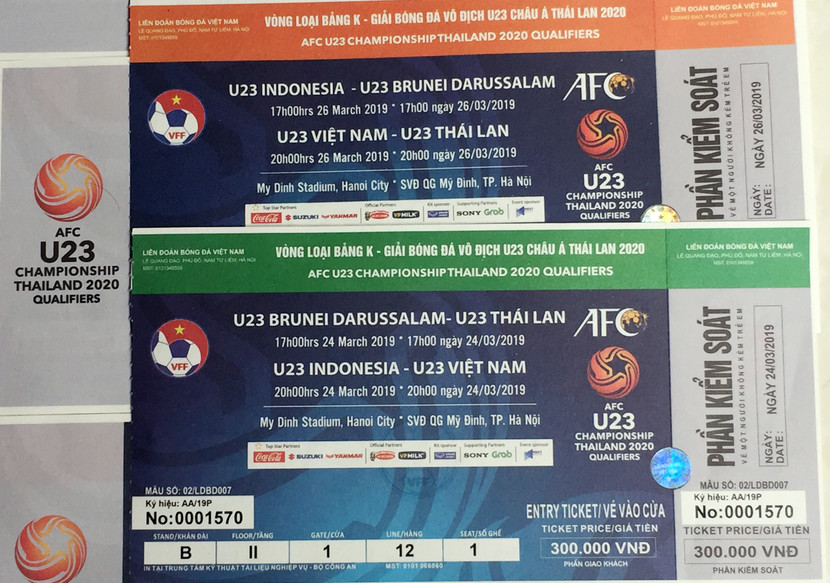 Vé 3 trận đấu của U23 Việt Nam gồm 4 mệnh giá 150-200-250-300 nghìn đồng, được BTC mở bán online từ ngày 10-3, tuy nhiên do lượng người mua không nhiều nên hiện vẫn còn tồn đọng lượng vé khá lớn. Sau khi đã ngưng bán online, BTC mở quầy bán trực tiếp trước cửa sân Mỹ Đình.