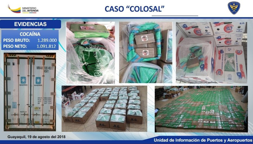 Tổng Tư lệnh Cảnh sát quốc gia Ecuador Nelson Villegas cho biết, có 1.094 khối dạng viên gạch giấu trong thùng đựng chuối, chứa chất bột màu trắng sau khi thử nghiệm sơ bộ cho thấy các chất bột này là cocaine hydrochloride, với trọng lượng tịnh là 1,1 tấn.