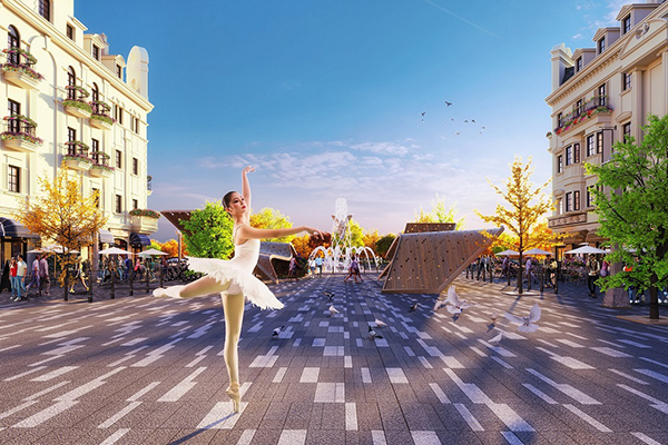 Toàn bộ lối đi nội khu được ốp đã granit cầu kỳ, tạo hình như những phím dương cầm bay bổng dẫn lối tới đài phun nước lãng mạn tựa điệu múa ballet của nước, những mái vòm tiểu cảnh uốn lượn; tất cả đều gợi nhớ những phút thư giãn ở góc quảng trường Concorde (Paris) huyền thoại.