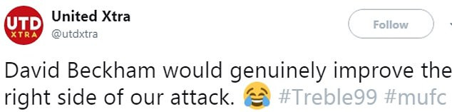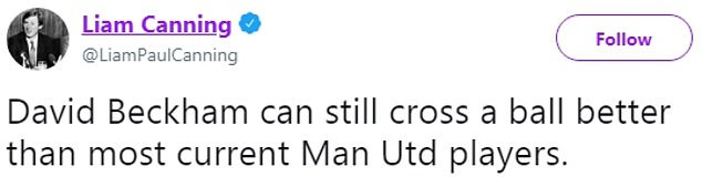 "David Beckham vẫn có thể tạt bóng tốt hơn hầu hết các cầu thủ M.U hiện tại", tài khoản Liam Canning nói. Trong khi trang ManUnitedZone thì bình luận: "Beckham có thể dễ dàng trở thành tiền vệ cánh phải mới của chúng ta".