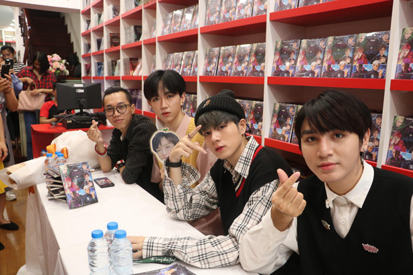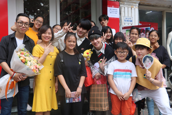 Độc giả trẻ chụp ảnh lưu niệm cùng ban nhạc