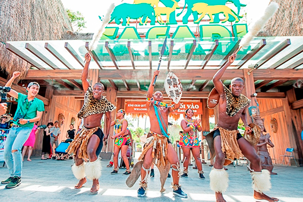 Đặt chân đến Vinpearl Safari, du khách ngay lập tức được khoác lên mình trang phục thổ dân rực rỡ và họa mặt độc đáo để trở thành một thành viên thực thụ của bộ tộc châu Phi kỳ bí. Hành trình hóa thân thổ dân sẽ tiếp tục đưa du khách vào khu vườn Safari, chiêm ngưỡng hơn 3.000 cá thể động vật, trong đó có hàng trăm loài quý hiếm cần bảo tồn, đang sinh sống hoàn toàn tự nhiên trong không gian rừng xanh hoang dã.