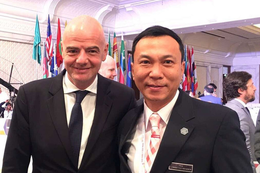 Chủ tịch FIFA Gianni Infantino và Phó chủ tịch VFF Trần Quốc Tuấn bên lề một cuộc họp