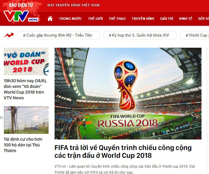 VTV đăng tải trả lời của FIFA về quyền trình chiếu World Cup tại các tụ điểm công cộng
