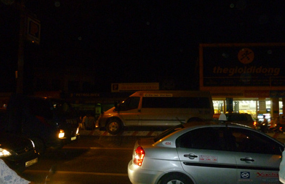 Chiếc xe này mang nhãn hiệu Ford Transit, mang BKS 30Y-9590. Nơi chiếc xe "trèo" trên dải phân cách này là ngã tư Cổ Nhuế - Phạm Văn Đồng. Đáng chú ý, dải phân cách cứng nằm giữa đường này cao khoảng 70 – 80cm.