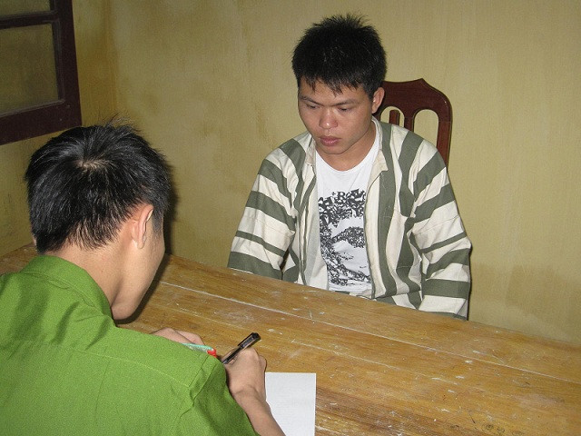 Đối tượng Nguyễn Văn Hùng tại cơ quan công an
