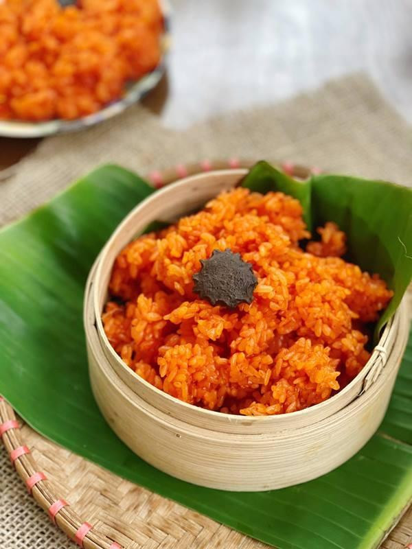 Trước đây, trồng gấc ngoài việc để thi thoảng đồ một nồi xôi ra thì quả gấc chẳng dùng vào việc gì khác, ấy thế nhưng nhà nào cũng có một giàn. Gấc chín đỏ au thì hái, bổ đôi rồi nạo hết ruột đỏ bỏ vào cái bát to, thêm vài giọt rượu trắng cho màu gấc tươi hơn. Gạo nếp đã ngâm trước đó khoảng 2-3 tiếng được đem trộn trộn đều sao cho toàn bộ thịt gấc bao quanh từng hạt gạo. Nếu ai cẩn thận thì bóc từng cái hạt ra, không thì cứ đồ nguyên cả hạt đưa lên chõ.