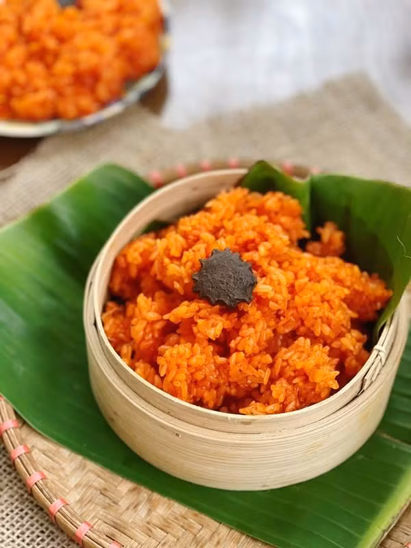 Trước đây, trồng gấc ngoài việc để thi thoảng đồ một nồi xôi ra thì quả gấc chẳng dùng vào việc gì khác, ấy thế nhưng nhà nào cũng có một giàn. Gấc chín đỏ au thì hái, bổ đôi rồi nạo hết ruột đỏ bỏ vào cái bát to, thêm vài giọt rượu trắng cho màu gấc tươi hơn. Gạo nếp đã ngâm trước đó khoảng 2-3 tiếng được đem trộn trộn đều sao cho toàn bộ thịt gấc bao quanh từng hạt gạo. Các bà nội trợ thường hay đồ bằng chõ đất, chõ sành, hoặc dụng cụ hấp được đan từ tre, nứa, mây.