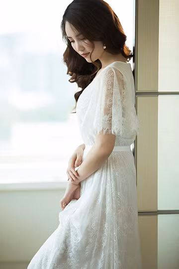 Trong chùm ảnh mới thực hiện, Á hậu Việt Nam 2008 có dịp khoe vẻ quyến rũ của 'gái một con' với loạt trang phục trắng tinh khôi của hai nhà thiết kế Đỗ Mạnh Cường, Lê Thanh Hòa. Thụy Vân cho biết, bình thường cô vẫn xuất hiện với nụ cười rạng rỡ nhưng khi làm mẫu ảnh, cô lại tiết kiệm nụ cười để thể hiện vẻ nữ tính, kiêu sa qua ánh mắt, bờ môi.
