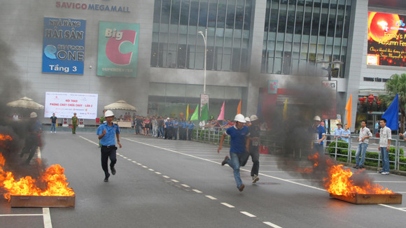 Chương trình tập huấn - hội thao nghiệp vụ PCCC-lần 2, được Trung tâm thương mại (TTTM) Savico Megamall, phối hợp với Phòng Cảnh sát PC&CC Long Biên tổ chức chiều qua (4-9),