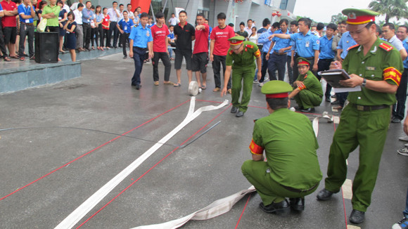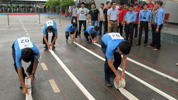 Hội thao được tổ chức với 2 phần thi: Rải vòi và chữa cháy cứu tài sản